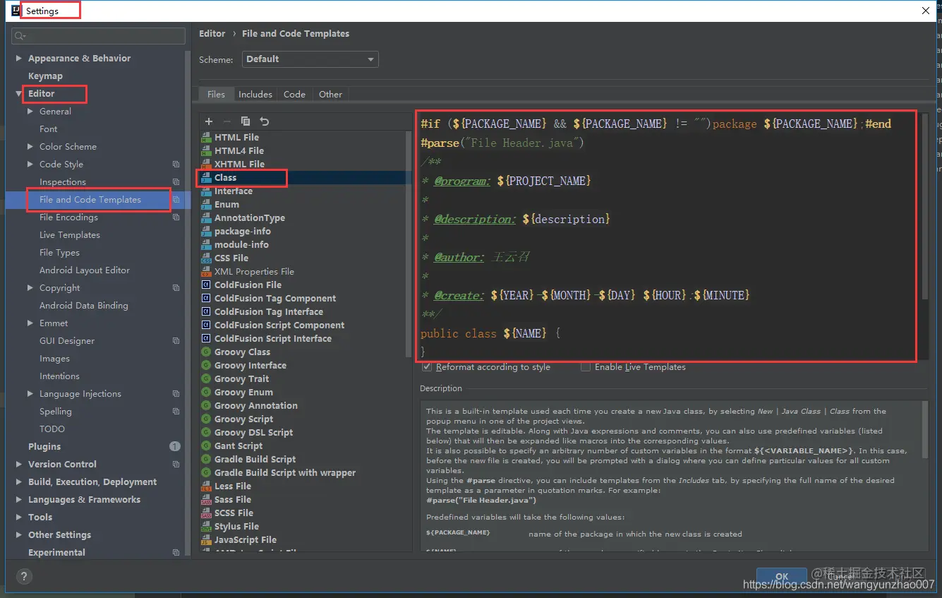 打开Setting,选在Editor,然后是File and Code Templates 最后是Files 中的Class ,点击class后,编辑右边的红色边框,里边是模板,将模板设置好,点击ok即可。