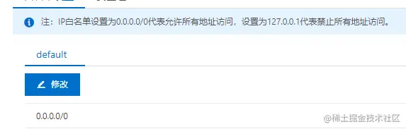 在设置一下我们的白名单,它默认是只有本机才能访问,我们给他设置成所有人都可以访问