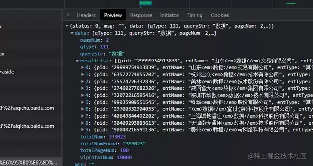 这里【杯酒】大佬查询的关键词是:数据,所以得到了好几页数据,而我和【艾米】都是直接查的:上海手术器械厂,这个只有一页,不太好观察规律,所以一直卡住了。