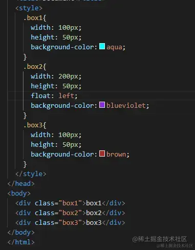 当给box2添加float:left时,三个盒子的排列变成