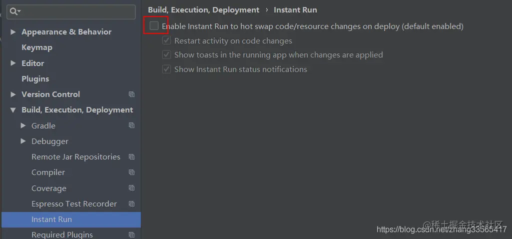 File | Settings | Build, Execution, Deployment | Instant Run