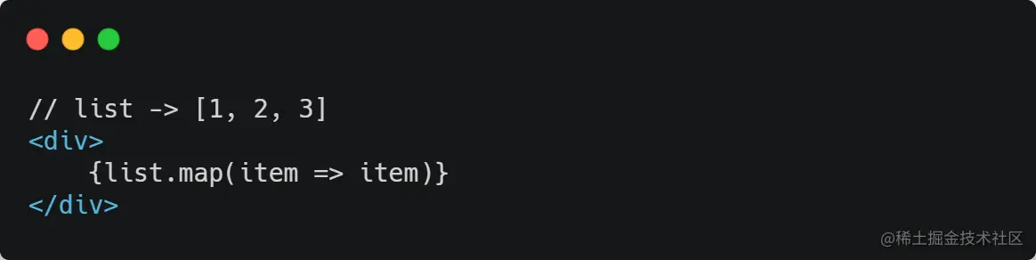在 React 中我们则不需要 API 学习,只需使用 JS 基础语法即可便捷快速的构建界面(如上述直接使用数组的 map 方法)