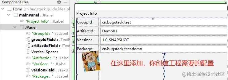 - 使用 Swing UI Designer 创建一个配置工厂信息的 UI 窗体,通过这样的方式创建可以直接拖拽。