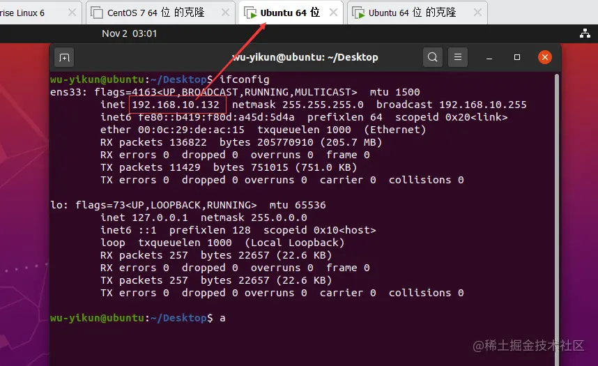ssh wu-yikun@192.168.10.132对 UbuntuA 进行远程连接!