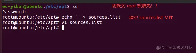 下一步,清空源文件 (echo '' > sources.list) 后将镜像文件内容拷贝进来: