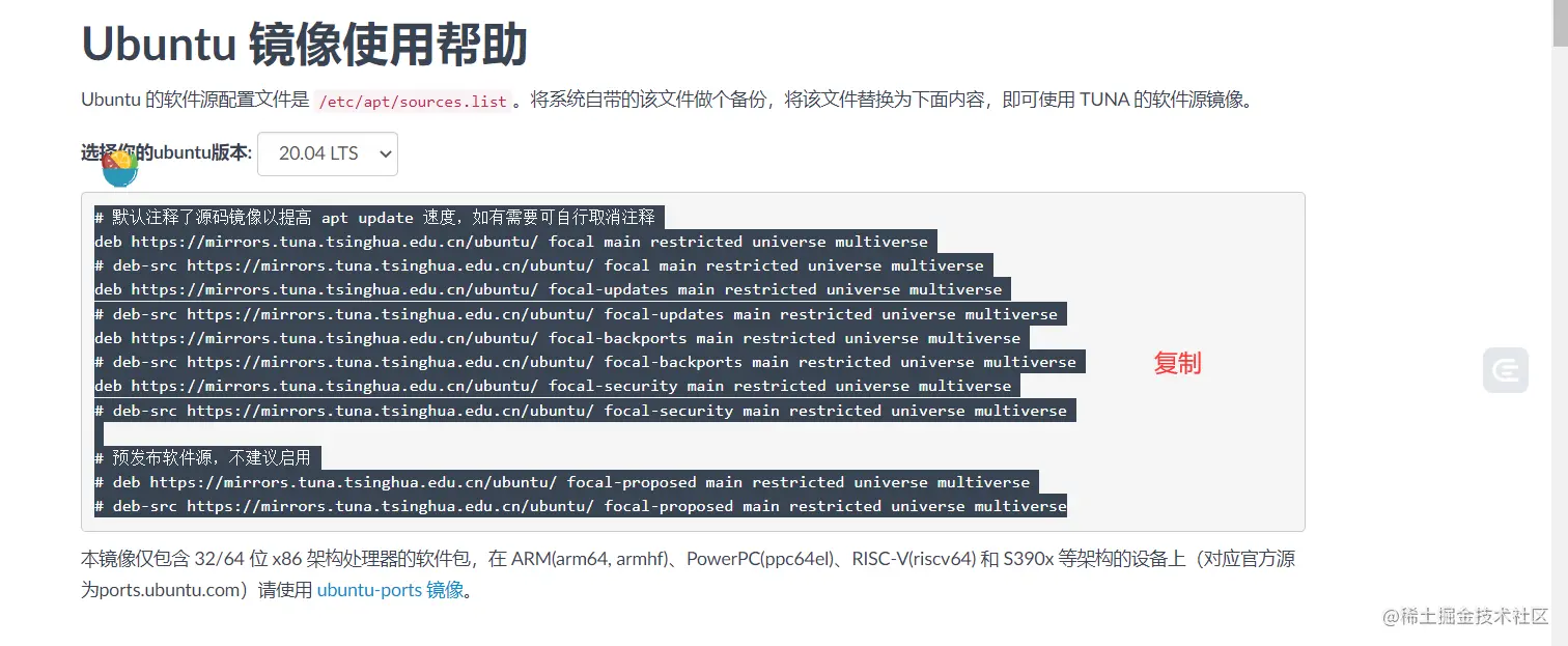 deb http://mirrors.tuna.tsinghua.edu.cn/ubuntu/ focal-backports main restricted universe multiverse