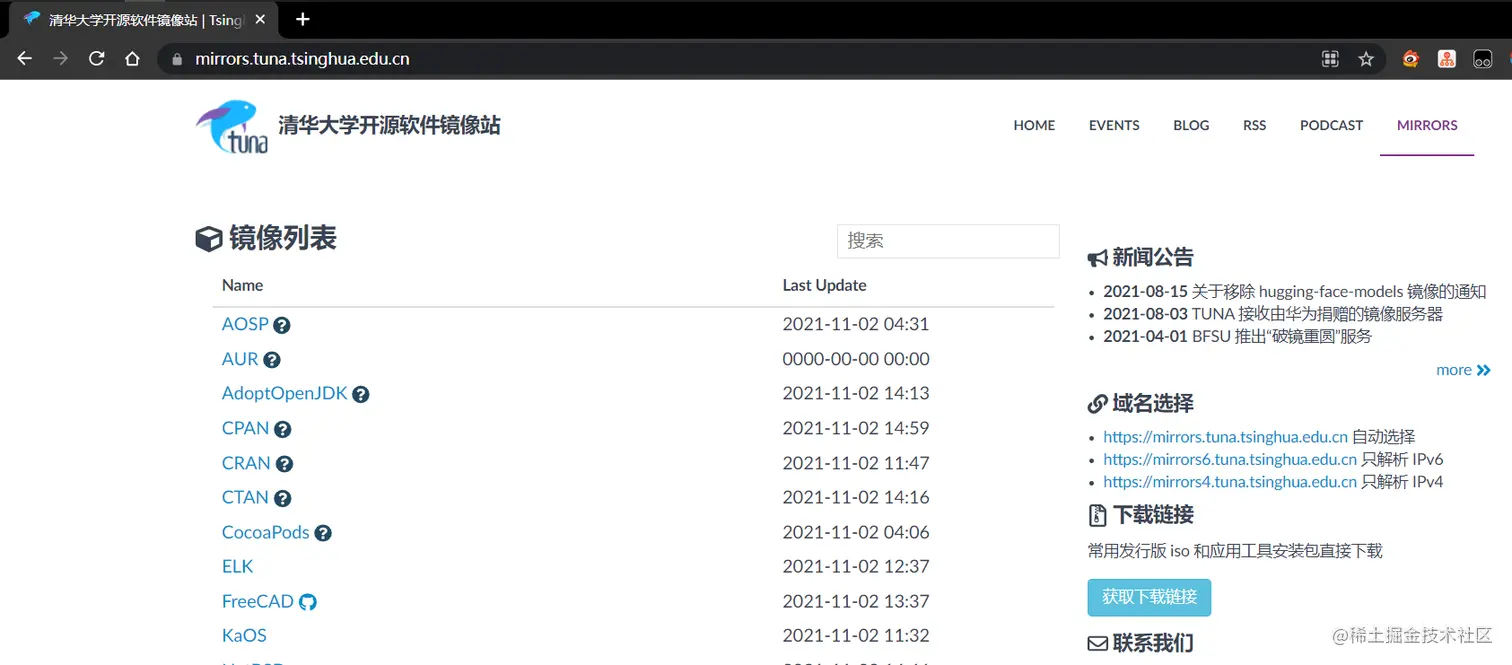 由图可见,apt 服务器在 US,所以需要寻找国内的镜像(清华大学镜像站) : mirrors.tuna.tsinghua.edu.cn/