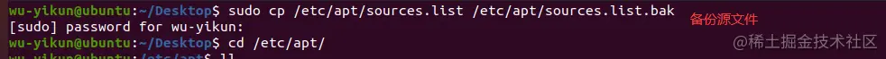 先备份一下源文件 : sudo cp /etc/apt/sources.list /etc/apt/sources.list.bak