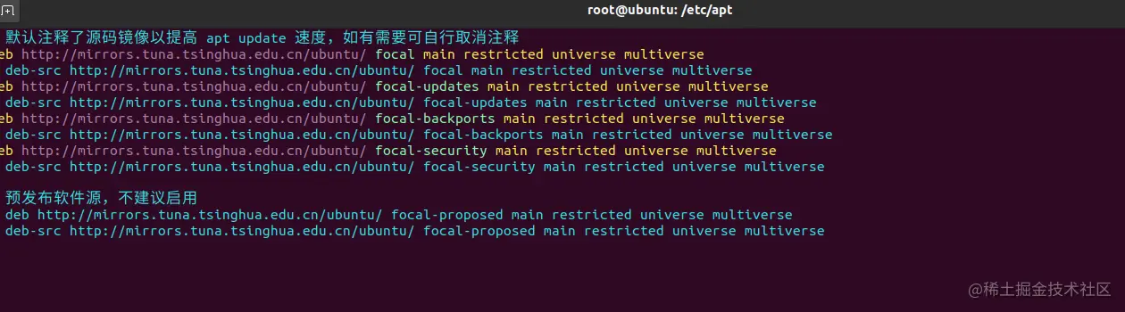 deb http://mirrors.tuna.tsinghua.edu.cn/ubuntu/ focal main restricted universe multiverse