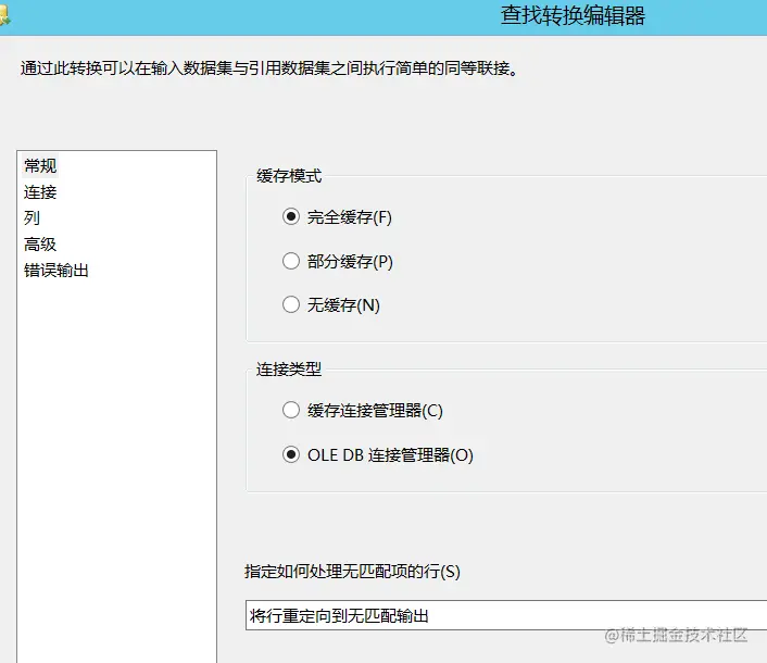我们在 “常规” 选项卡上配置了 “指定如何处理无匹配项的行” 下拉列表,将“不匹配的行”发送到 "无匹配查找输出"(NoMatch lookup output)。