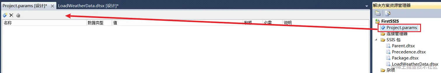 接下来,通过在解决方案资源管理器中,双击 Project.params 打开 Project Parameters,如图所示。