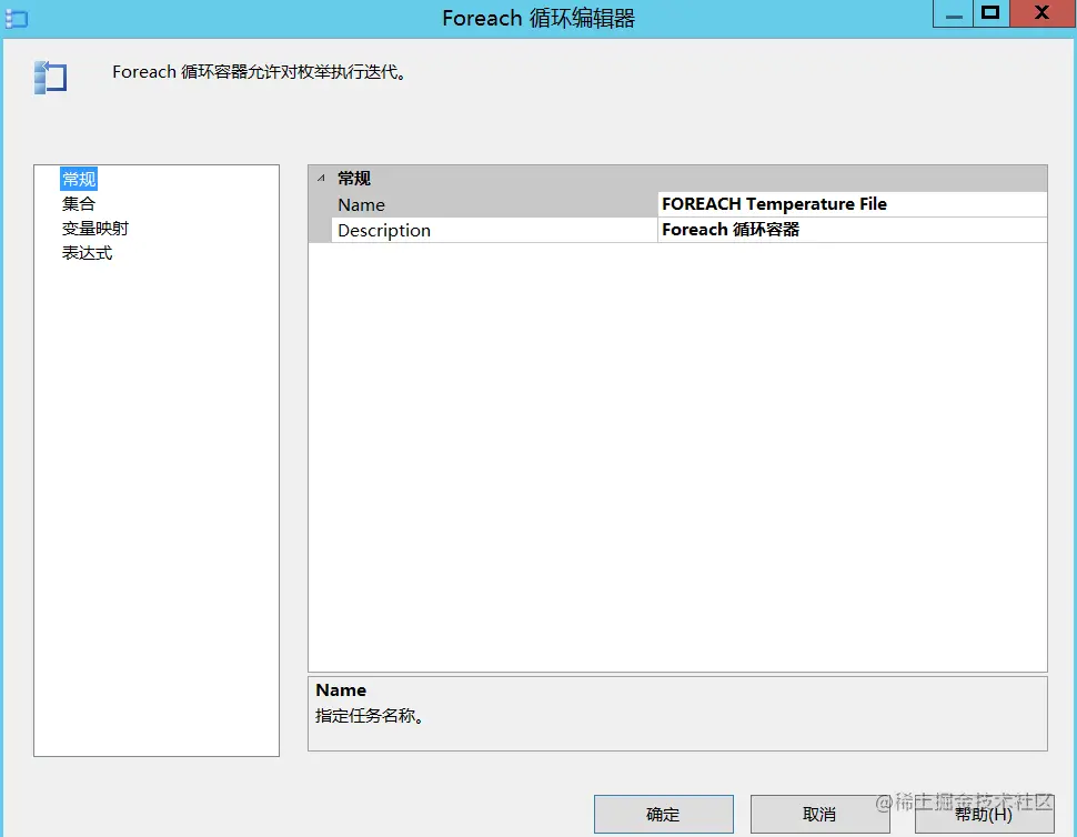 重命名 Foreach循环容器 为“FOREACH Temperature File”。如图所示。
