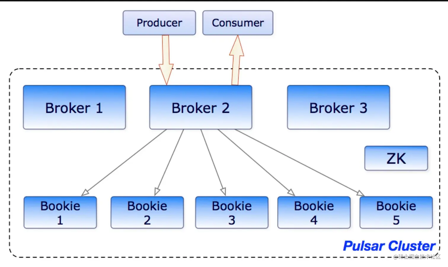 相比kafka、rocketmq等MQ,pulsar基于bookkeeper的存储计算分离架构,使得pulsar的消息存储可以独立于broker而扩展。
