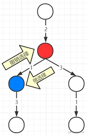 上面蓝色文字“决策”对应的就是代码中的“做选择”,“结束”对应“满足结束条件”,“退回”对应“撤销选择”
