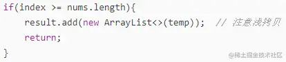 result.add(new ArrayList<>(temp)); // 注意深拷贝和浅拷贝!!必须是new一个新数组