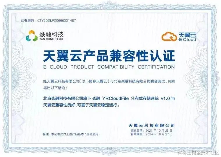 “十四五”期间,我国将科技创新放在了更加突出的位置,把科技自立自强作为国家发展的战略支撑。为了推动科技创新的快速发展,加快产品融合进程。日前,焱融科技与天翼云科技完成了产品兼容性认证。本次测试是由焱融 YRCloudFile 分布式存储系统与天翼云进行适配认证,结果显示,YRCloudFile 可基于天翼云稳定运行,系统功能运行稳定,产品体验良好,满足了用户功能、性能和可靠性要求。
