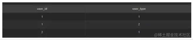 group by user_id, user_type; -- 返回1, 1; 1, 2; 2, 1