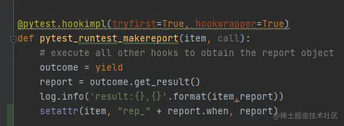 (2) 加入hook函数pytest_runtest_make_report监听运行相关信息。