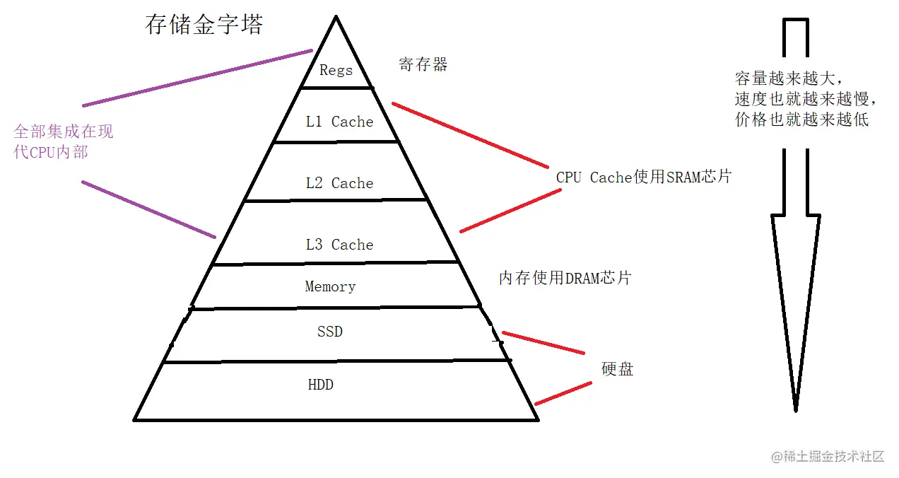 寄存器与其说是存储器,其实更像是 CPU 本身的一部分,只能存放极其有限的信息,但是速度非常快,和 CPU 同步。