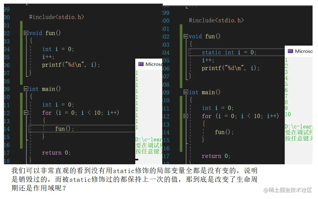那他变的是什么,还是全局变量吗?是的 他还是全局变量,他是随着整个程序下载到内存中,变成进程之后,这个全局变量一直在,那他本质上是什么,本质上说明生命周期没有变,改变的是作用域。