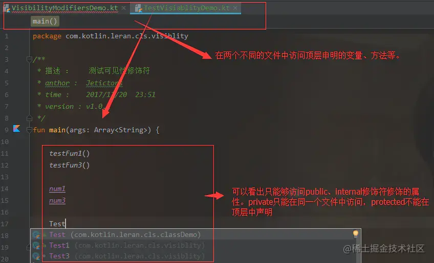 Java中的可见性修饰符和Koltin中的可见性修饰符还是很有几点不同之处的: