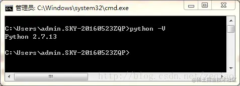 检查是否安装成功:cmd 执行 “python –V”【注意是大写V】