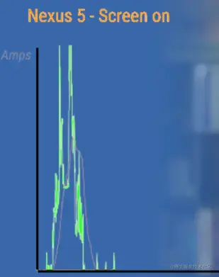 可以看到,屏幕唤醒的一瞬间是非常耗电的,这里有一条电量使用高峰线。