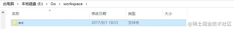 下载成功后会在GOPATH(我自己建的工作空间文件目录)下生成src文件夹