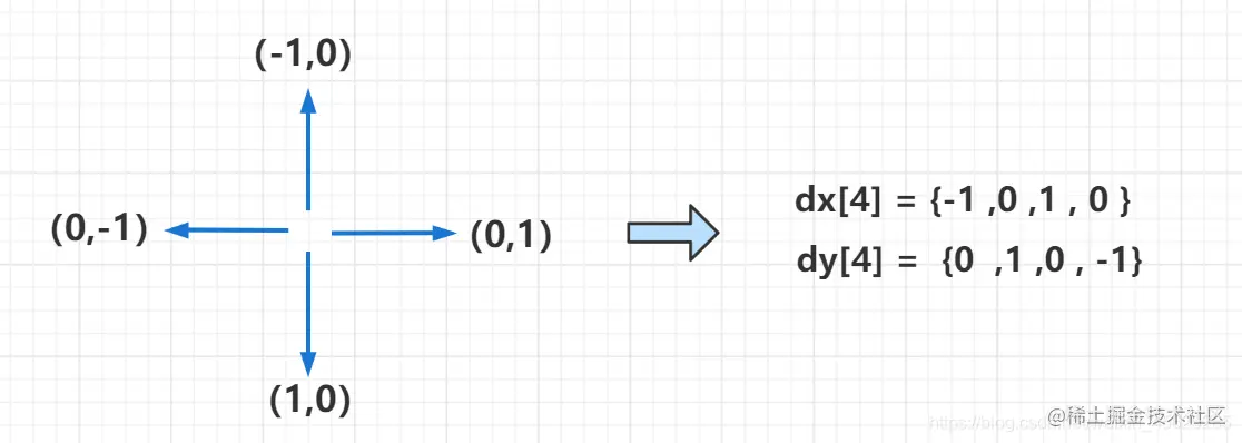 int dx[4] = {-1,0,1,0}, dy[4] = {0,1,0,-1}; //方向数组
