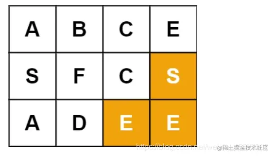 输入:board = [["A","B","C","E"],["S","F","C","S"],["A","D","E","E"]], word = "SEE"