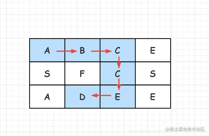 输入:board = [["A","B","C","E"],["S","F","C","S"],["A","D","E","E"]], word = "ABCCED"
