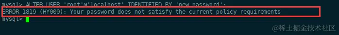 原因是因为MySQL有密码设置的规范,具体是与validate_password_policy的值有关: