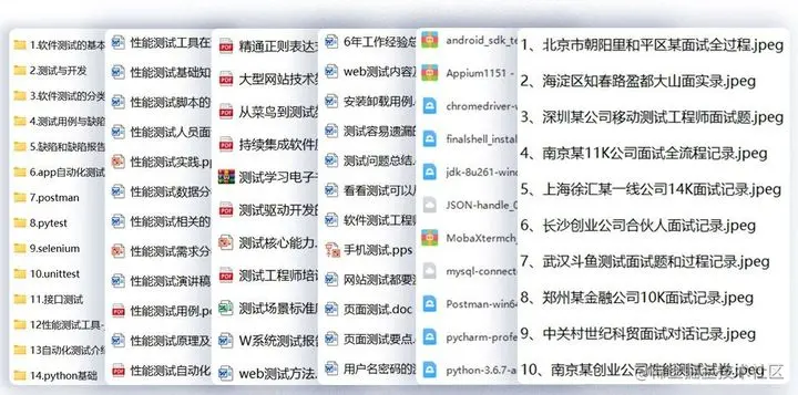 这一些资料,对做【软件测试】的朋友而言应该是较为完整了,这类学习资料也陪伴我走过了最艰难的路程,希望也可以帮助到你!万事要尽早,尤其是技术行业,一定要提升技术功底。