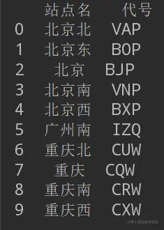 data = {"站点名": ["北京北", "北京东", "北京", "北京南", "北京西"],
