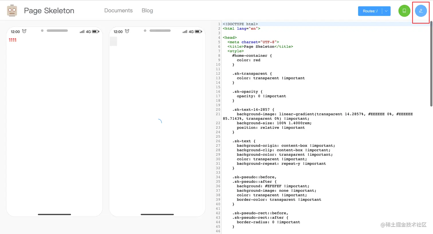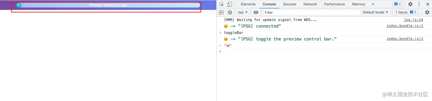 此时页面应该可以正常运行,如果页面控制台不报错且输出以下内容,表示page-skeleton正常运行