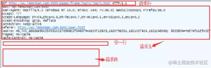 首先我们来看下 HTTP 协议请求消息,也就是 http request,指从客户端到服务端的请求消息,包括以下信息:
