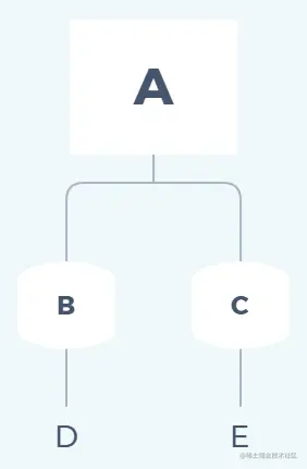 但当组件嵌套关系复杂的时候,如下图所示,A组件下有B组件和C组件,B组件下有D组件,C组件下有E组件。