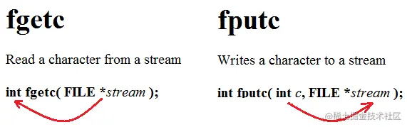fgetc | 以整型的形式返回读到的字符,遇到错误或文件结束时返回EOF |