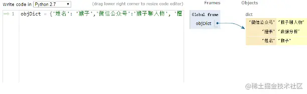 举个栗子 ,比如你在学习Python中的字典数据结构,但是不太理解这个概念,那么你就可以将书中代码输入,然后点击下面红框汇中的按钮。