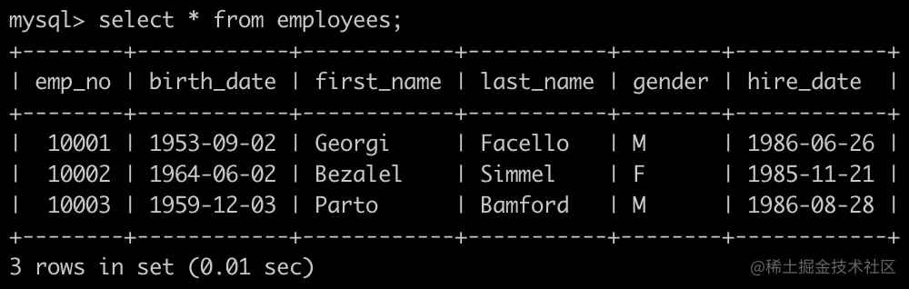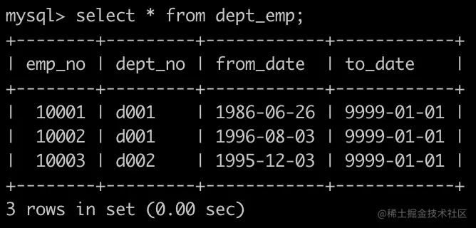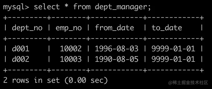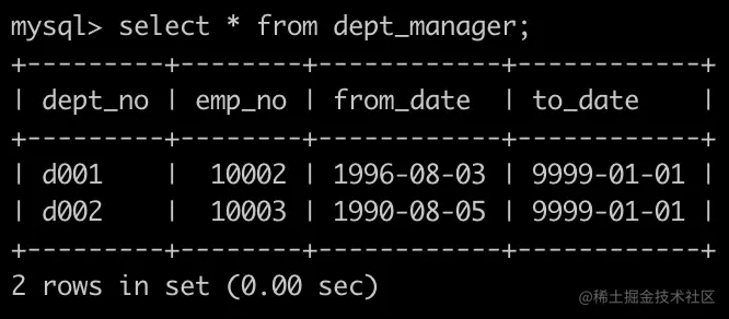 (1) 查询的要求是不在 dept_manager 表中的 emp_no,使用 NOT IN + 子查询。MYSQL官方文档中提到 IN 使用时效率不高,推荐使用 EXISTS 或 JOIN。