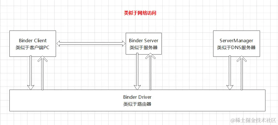 1、我们都知道Binder机制中涉及4个模块,对于Binder Driver 和 Server Manager Android底层已经帮我们实现,而且这个过程非常的耗时,所以我们只需要实现Binder Client和Binder Server即可。