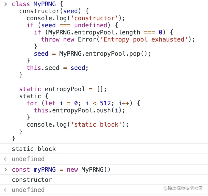 可以看到类静态初始化块,在类 MyPRNG 初始化时就进行了块内的计算: