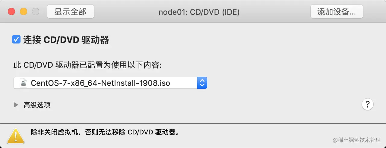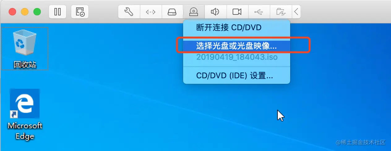 第二步: 打开CD/DVD, 选择20190419_184043.iso镜像文件, 然后关闭
