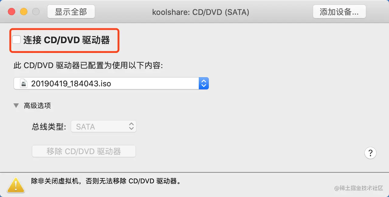 第五步: 设置koolshare虚拟机, 将CD/DVD光盘拿出来, 取消勾选