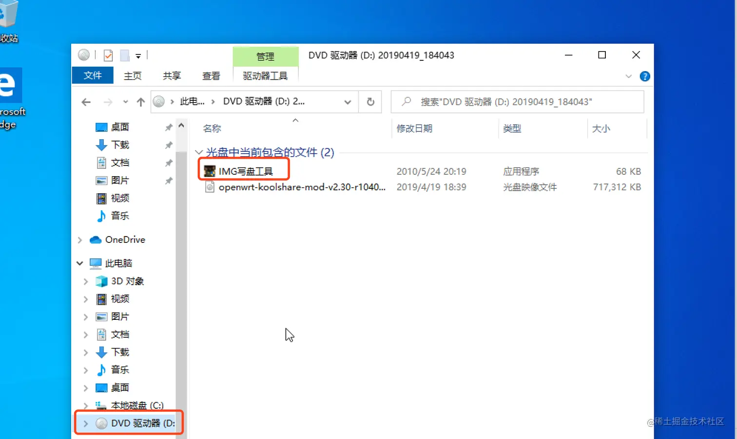 第三步: 打开我的电脑, 找到DVD驱动器, 点击, 找到IMG写盘工具
