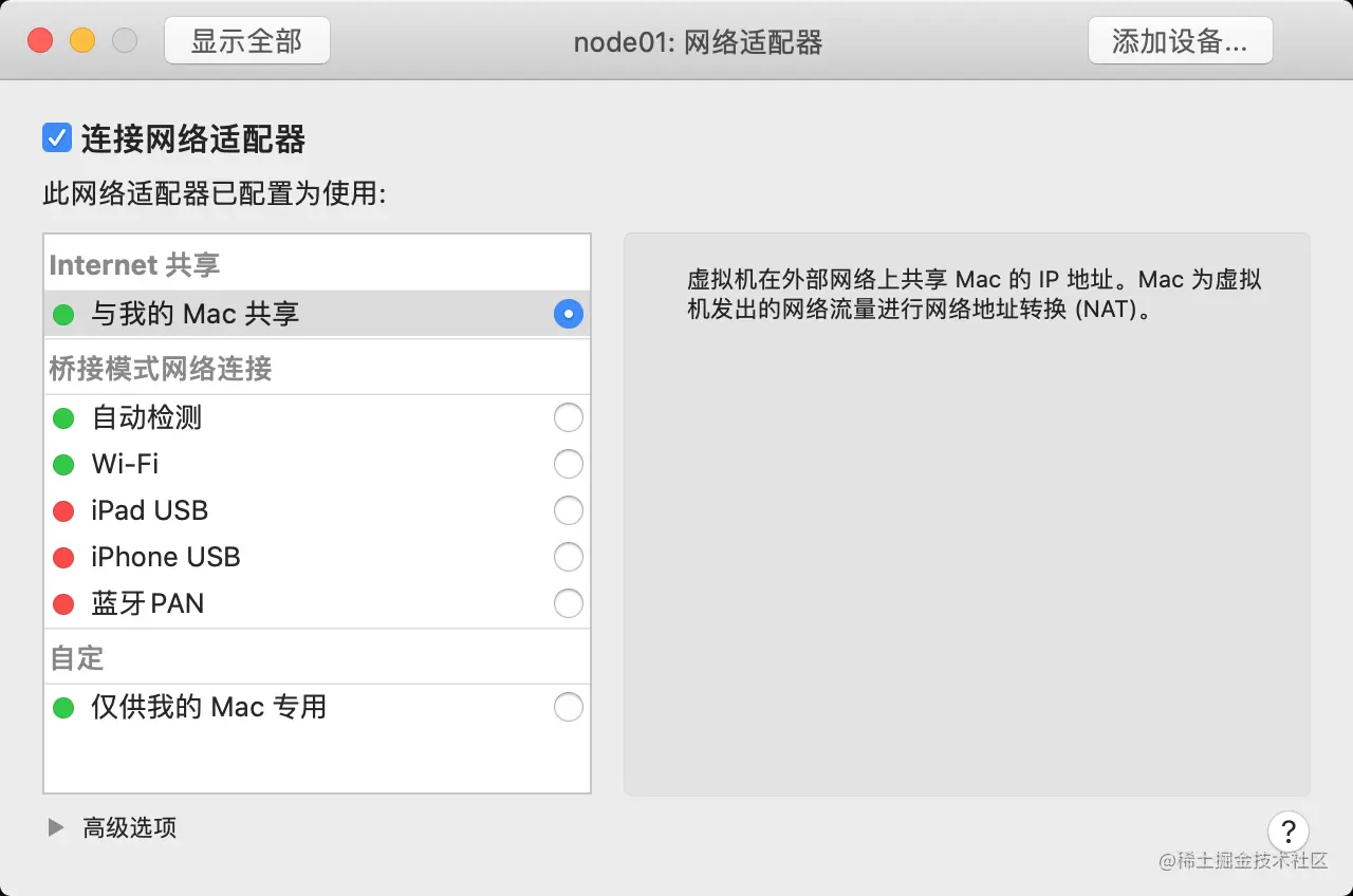 设置mac的仅主机模式的的方式, 参考文章: