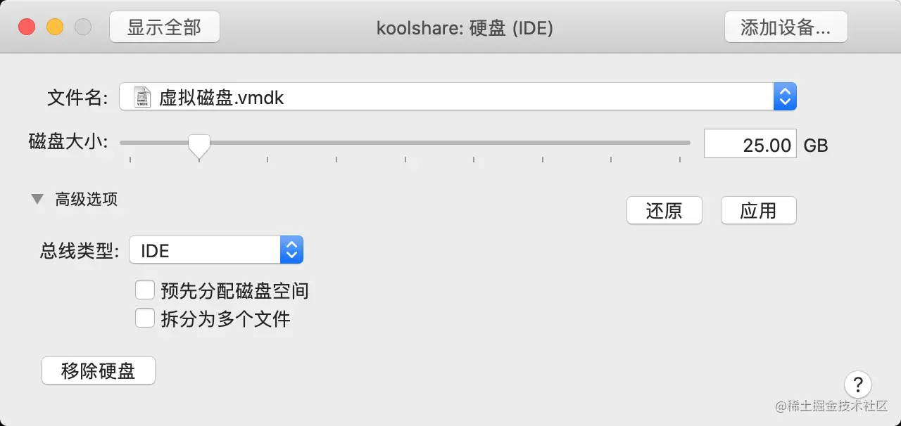 3. 硬盘设置为100G, 取消拆分为多个文件存储