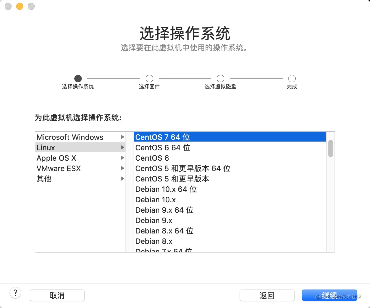第二步: 选择操作系统--linux, centos7