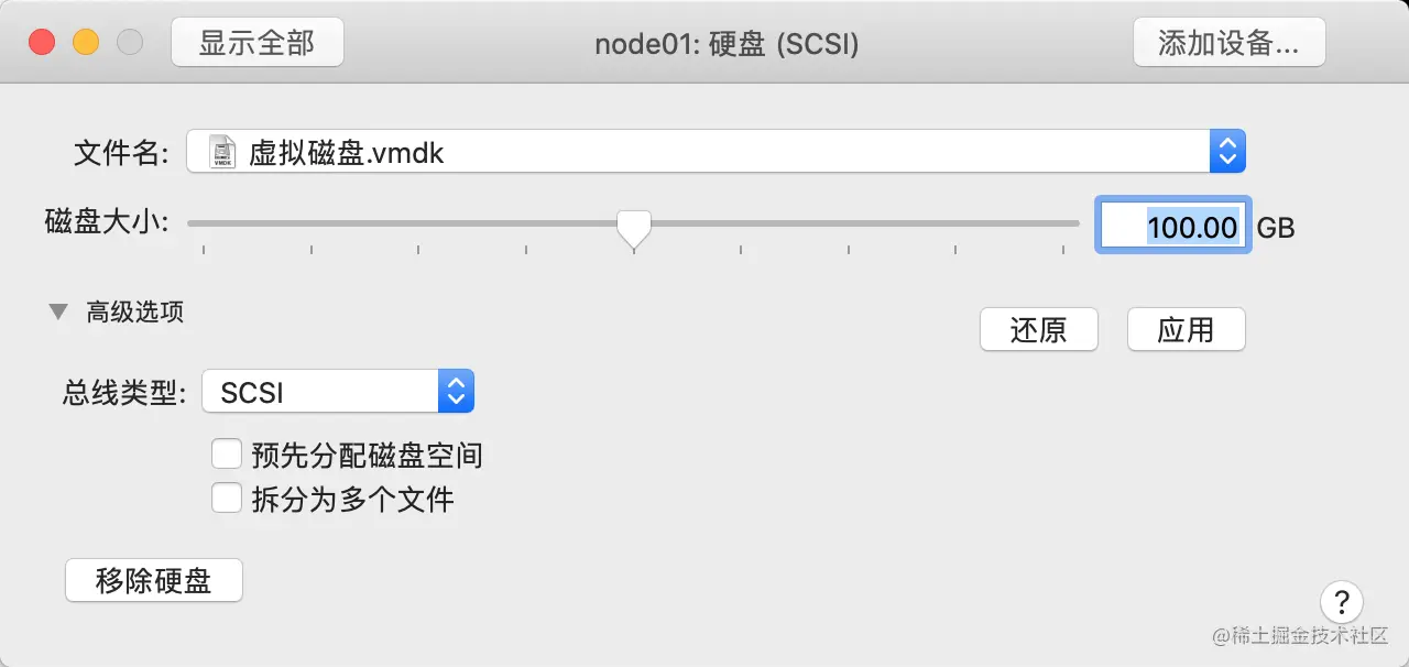 node和master01配置差不多, 只是内存4G, 硬盘100G稍微设置的大一些, 实际工作者内存大一些, 运行的快