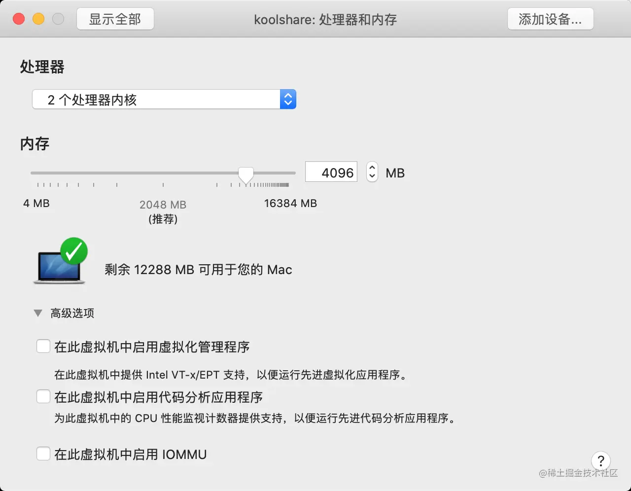设置处理器和内存: 2核cpu, 4G内存